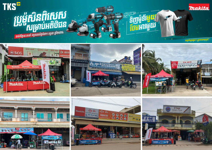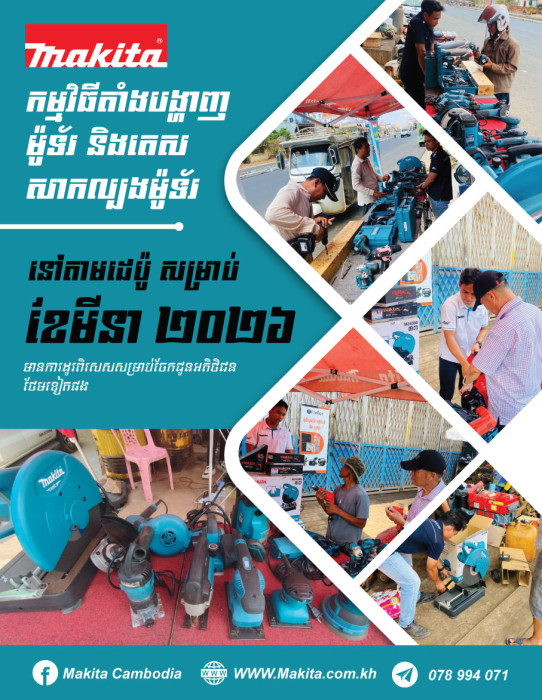 សួស្តីអតិថិជន Makita! នៅក្នុងខែ មីនា ឆ្នាំ 2026 នេះមានកម្មវិធីតាំងបង្ហាញផលិតផលនិង តេសសាកល្បង ផលិតផលម៉ាគីតា នៅតាមដេប៉ូលក់ផលិតផលរបស់Makita